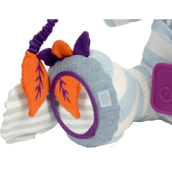 Het lijf van de miereneter is gemaakt van zachte, geborduurde stof en vrolijke kleuren. In de zak zitten spiegeltjes, rammelaars, een bijtring en een klein diertje. Je zult er veel plezier aan beleven om er piepende en rammelende geluiden mee te maken.