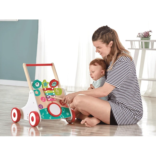 Hij kan worden aangepast aan de loopsnelheid en heeft onder meer een trommel en een xylofoon.
